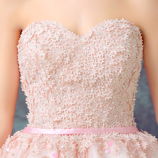 Angel Wedding Pink Lace front short rear long bridal toast Toast Tail Wedding Dresses Evening Dress 5730