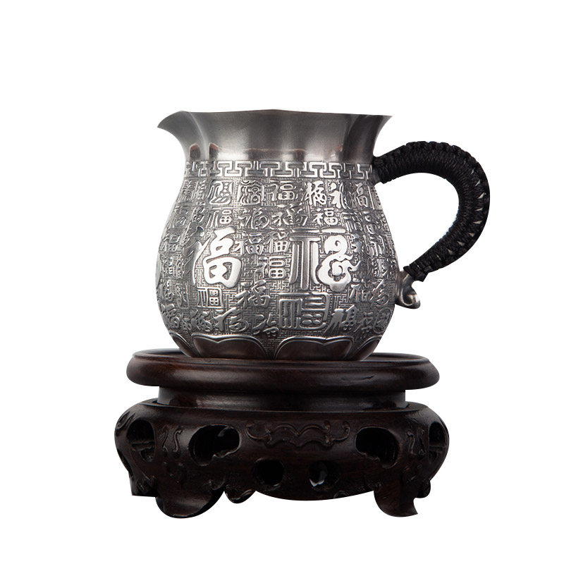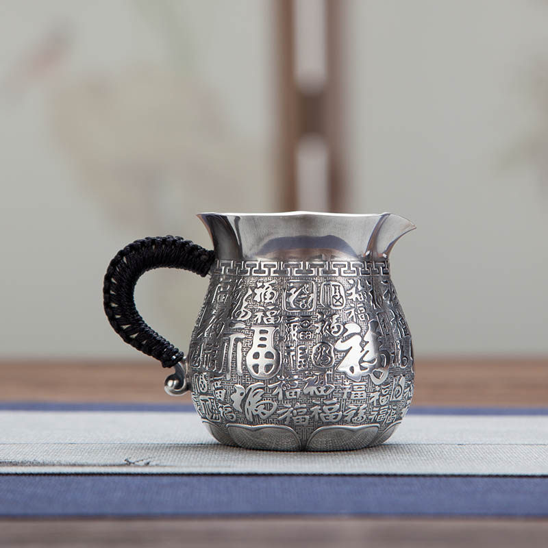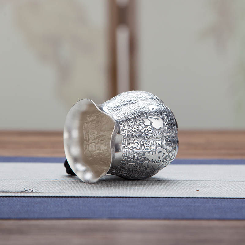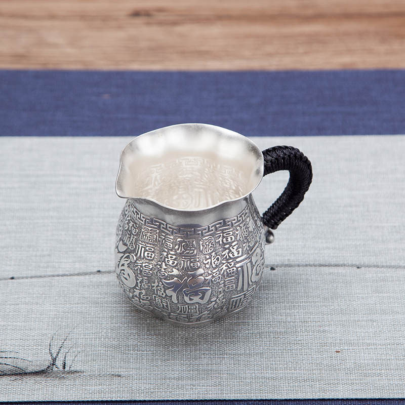 Hundred Fu Justice Cup Pure Handmade Fine Hammer Veins Pure Silver 999 Fair Cup Pure Silver Kung Fu Tea With Tea Sub