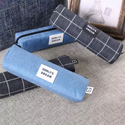 Boy Pen Bag Japanese Simple College Student Simple Stationery Box Canvas Large Capacity Korean version of high school student triangle pencil bag female cowboy fabric solid color pen storage bag Black junior high school pencil case