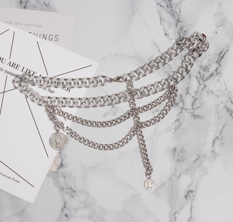 Tough chain belt female metal decoration gold ins tide retro with suit pants belt chain waist accessories