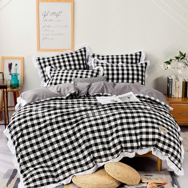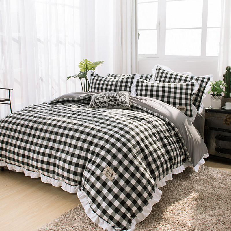 Quilt cover single piece Korean version student dormitory grid single double color weave washed cotton 200x230 quilt cover 1 5m1 8 m-Taobao