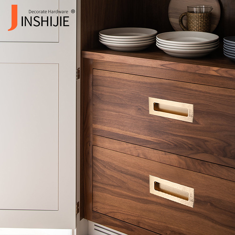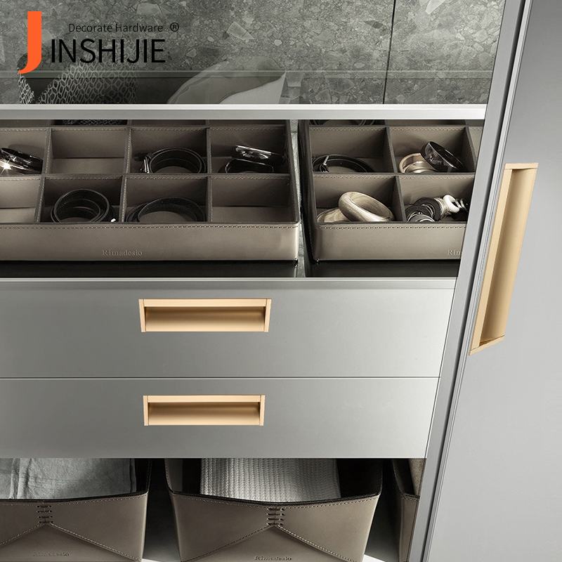 Golden invisible handle integral cupboard drawer cabinet door embedded digging groove tatami concealed push-pull shifting door copper color handle