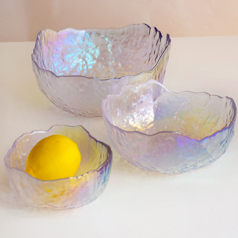 Day Style Transparency Dazzling Glass Cup Creative Hammer Tattoo Fruit Vegetable Salad Bowl Sweet bowl Large Bowl of Wins Wind