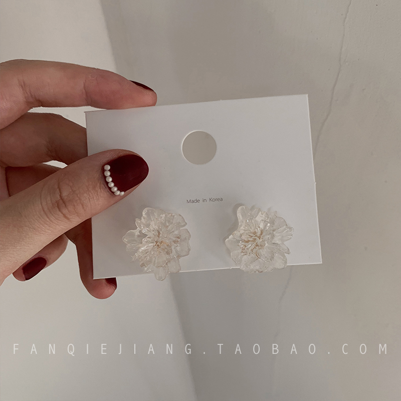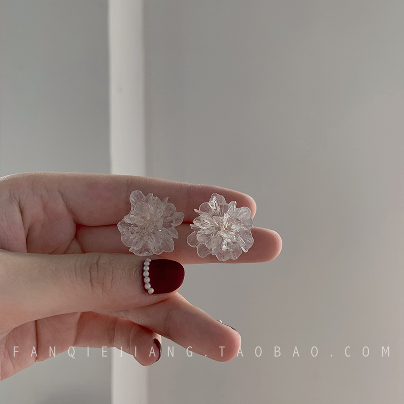 High level Sensation Transparent Earrings Flowers SUPER FAIRY Acupuncture Girl Temperament 100 hitch a little crowdnet red Tongan South Korean personality