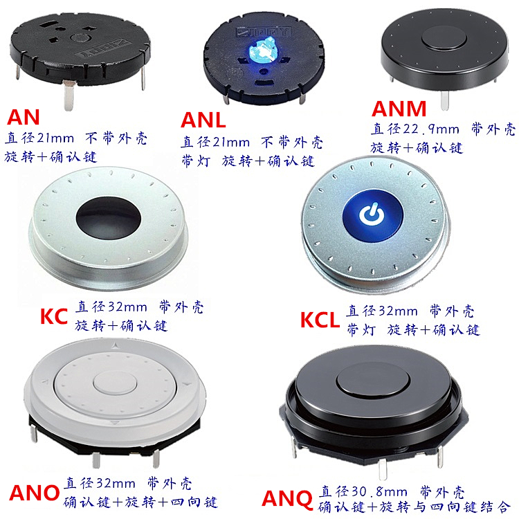 Import ultra-thin belt lamp with confirmation key Five increments of 20mm diameter round multi-gear rotary encoder switch