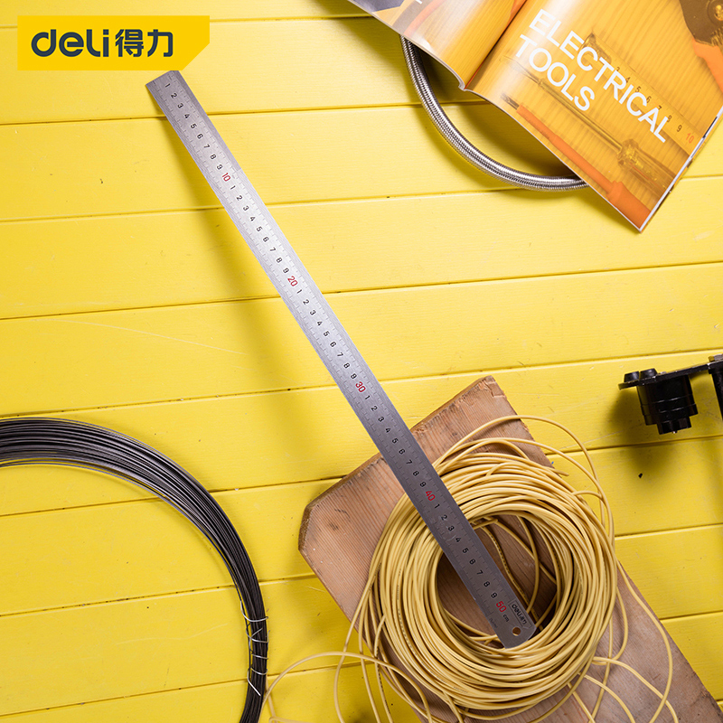 Deli stainless steel straight ruler scale metric drawing steel ruler 50cm 1 meter 150cm ruler thickened high precision