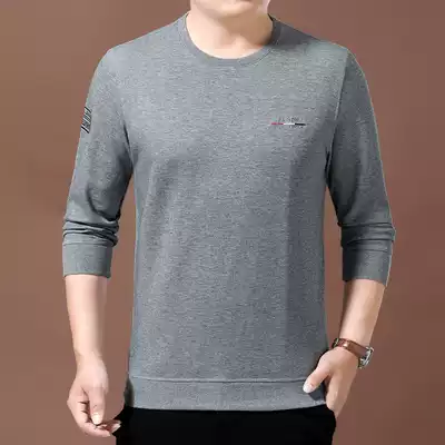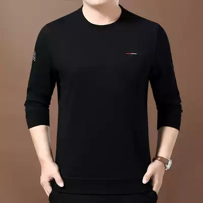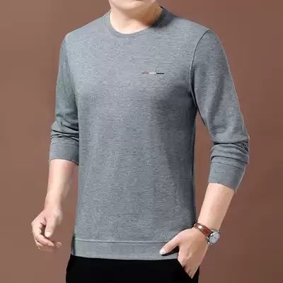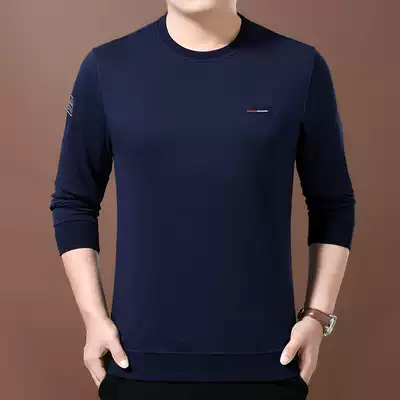 Woodpecker autumn round neck thick cotton T men's long sleeve T-shirt business loose casual middle-aged pullover base shirt top