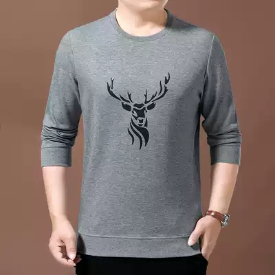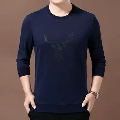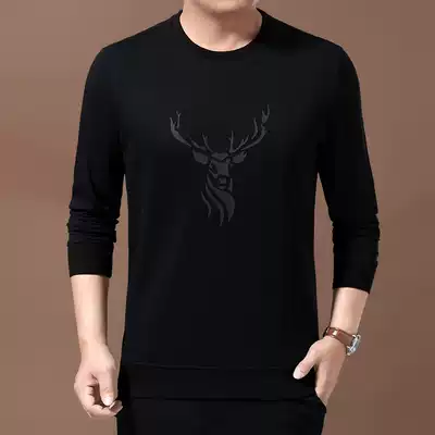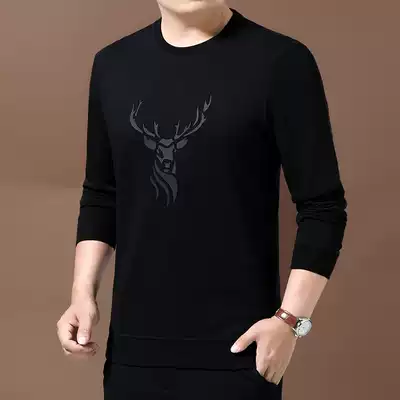 Woodpecker autumn middle-aged man round neck thick cotton T male black loose casual long sleeve men father pullover base shirt