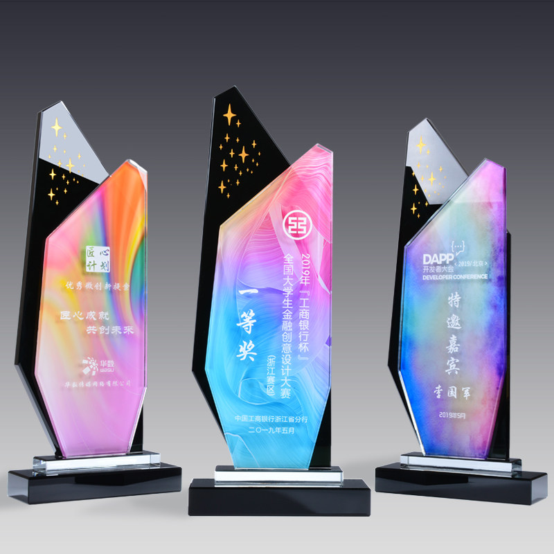 Marble trophy Geometric crystal trophy custom creative lettering color designer medal authorization plate production