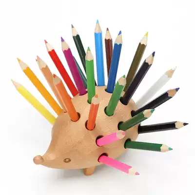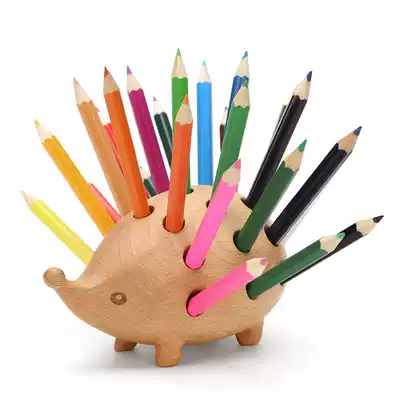 Hedgehog pen holder desktop decoration Wooden pen insert craft gift decoration Business office gift gift souvenir gift crayon