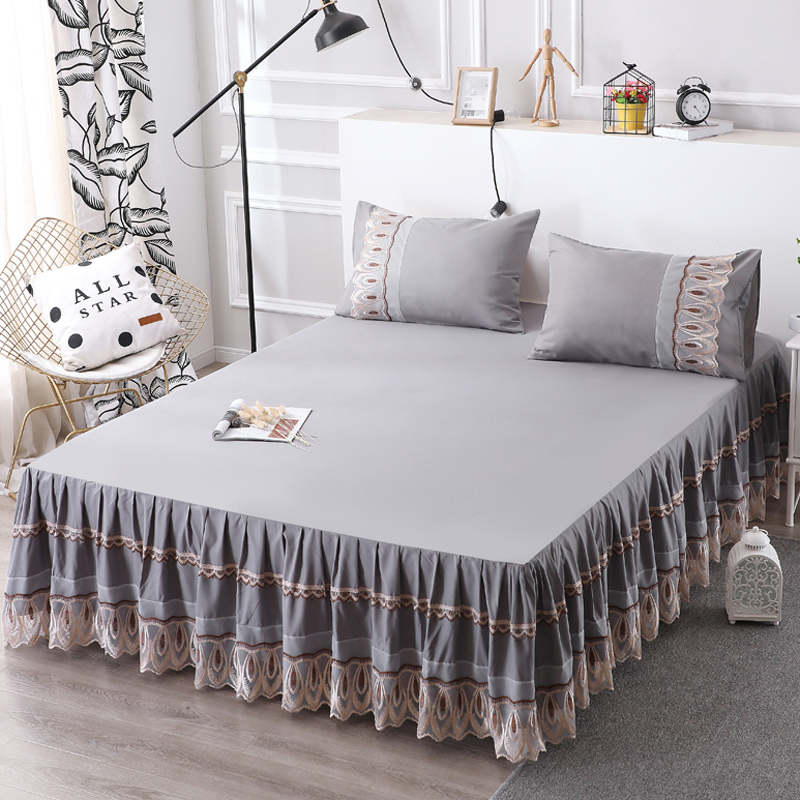 European solid color lace single bed skirt bed cover Bed single Simmons protective cover 1 8m bed cover non-slip summer