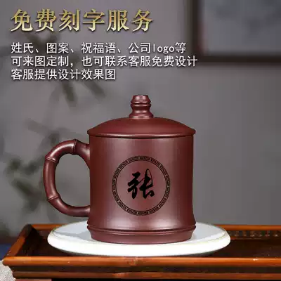 Customizable raw mine purple sand Cup Yixing male Lady handmade Master Cup lettering large capacity kung fu tea cup with lid