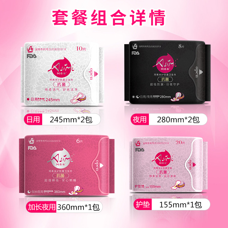 Ahimi antibacterial sanitary towel woman whole box of aunt towel with daily nighttime combination of cotton soft ultra - thin breathable 62 tablets