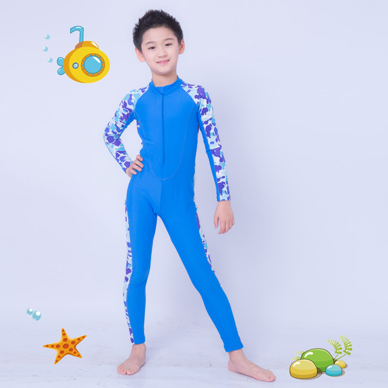 Children's swimwear medium and big boys and girls one-piece long-sleeved trousers warm sunscreen waterproof mother diving surfing swimsuit