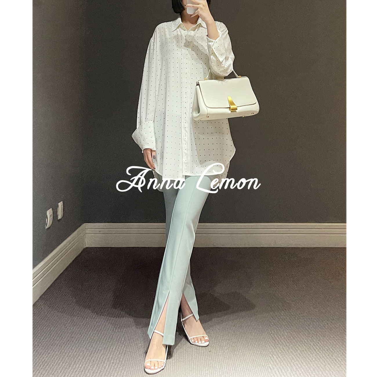 AnnaLemon High-end Digital Smoking Woman Crossed Black Suit Pants Trimming Legthin Middle High Waist