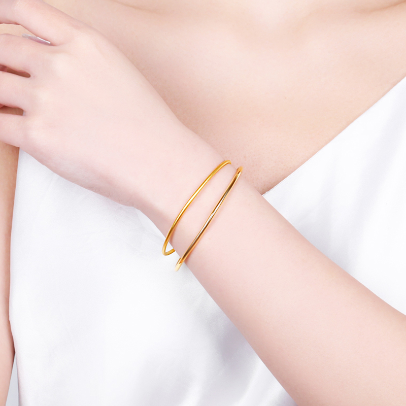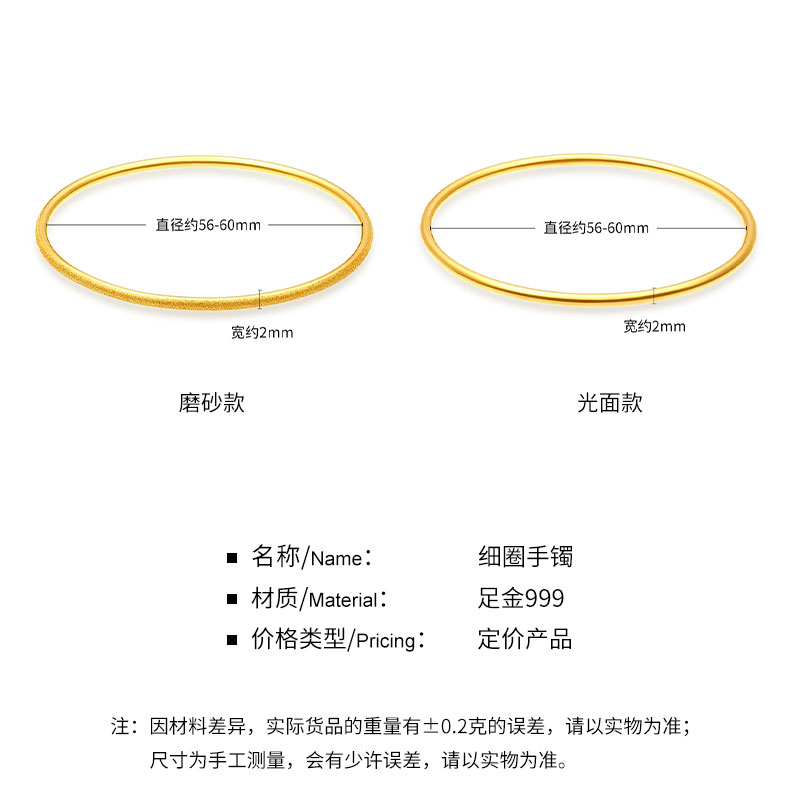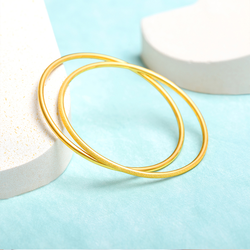Three Lives Three Worlds Gold Bracelet Female 999 Pure Gold Hand Chilled Pure Gold Glossy Plain Circle 3D Hard Gold Gold Bracelet for Mom
