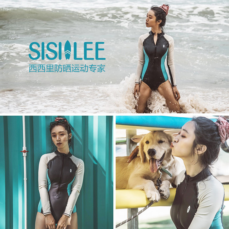 Sisiilee Sicilian One-Body Swimsuit for Women Long Sleeve Sunscreen Chlorine Resistant Surfwear for Women Vacation Snorkeling Swimsuit
