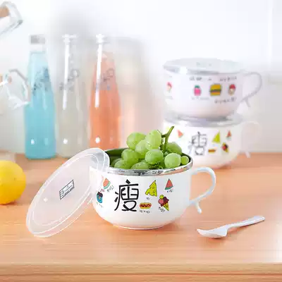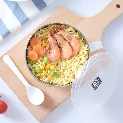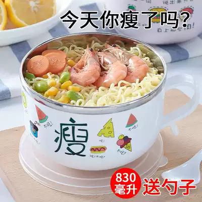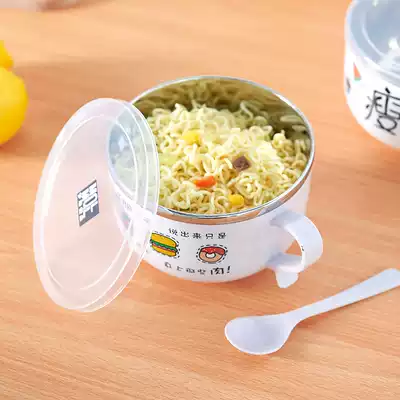 Stainless steel instant noodle bowl with lid Home student dormitory bowl chopsticks single single single instant noodle bowl rice bowl artifact to work