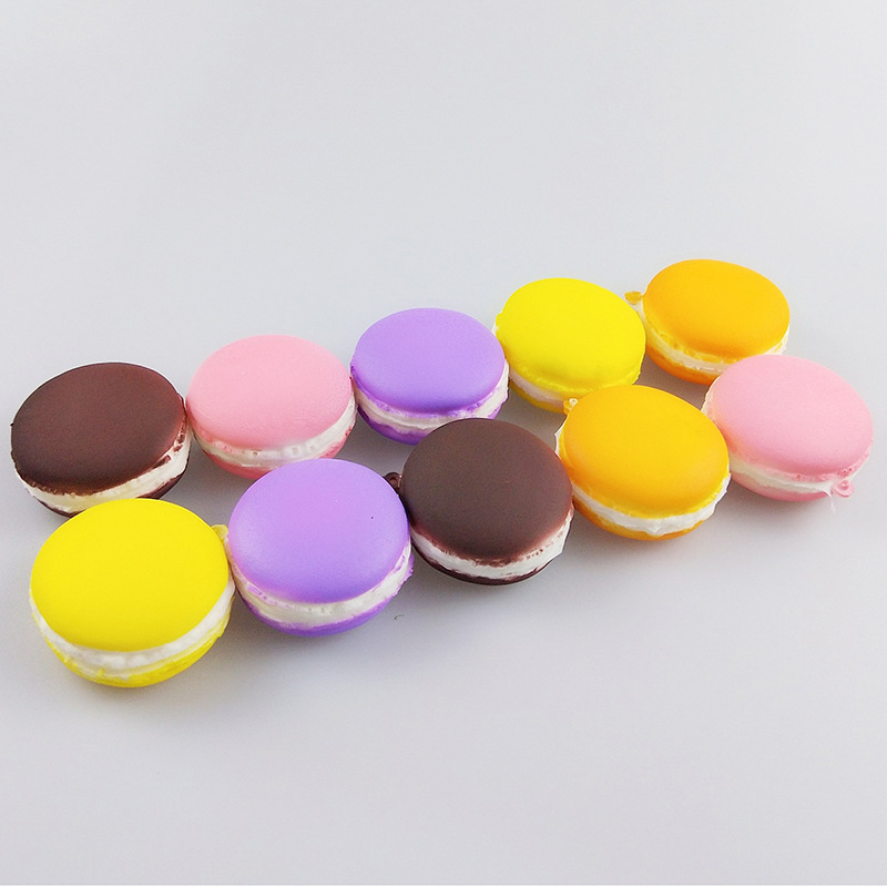 Hot sell Squishy emulation PU bread multicolored macaron mobile phone key hanging decoration vent pressure relieving toy spot