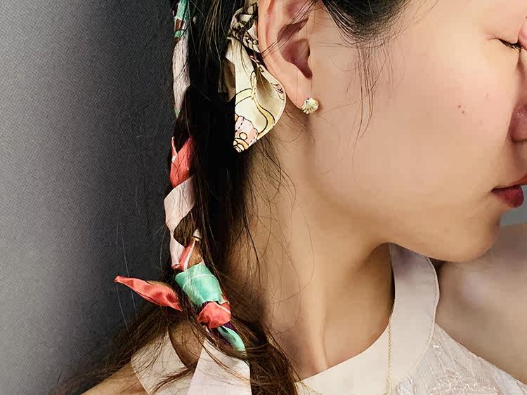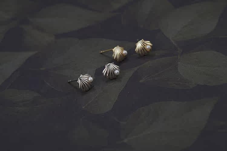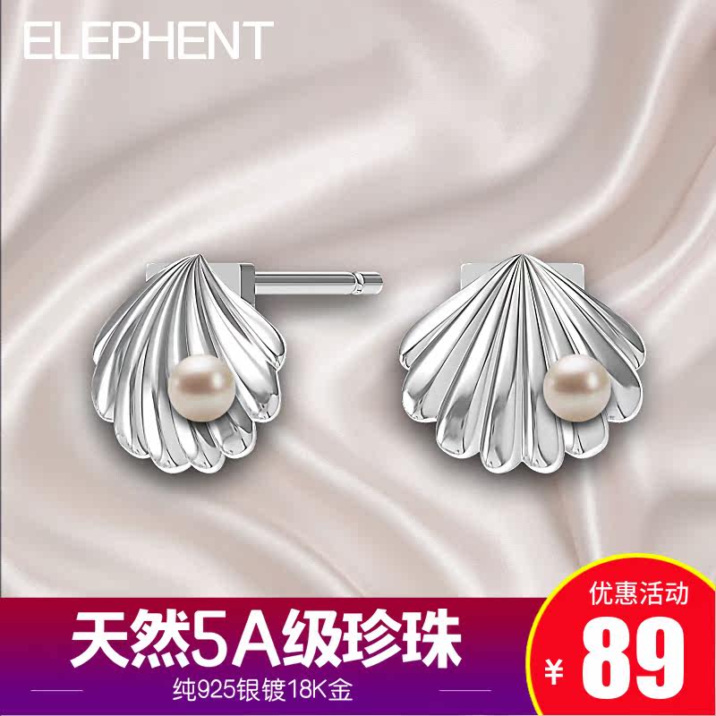 S925 pure silver earring natural pearl earnail scallop belle-style light lavish feminine mesh red sensual seashells