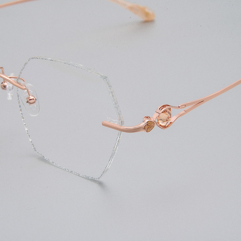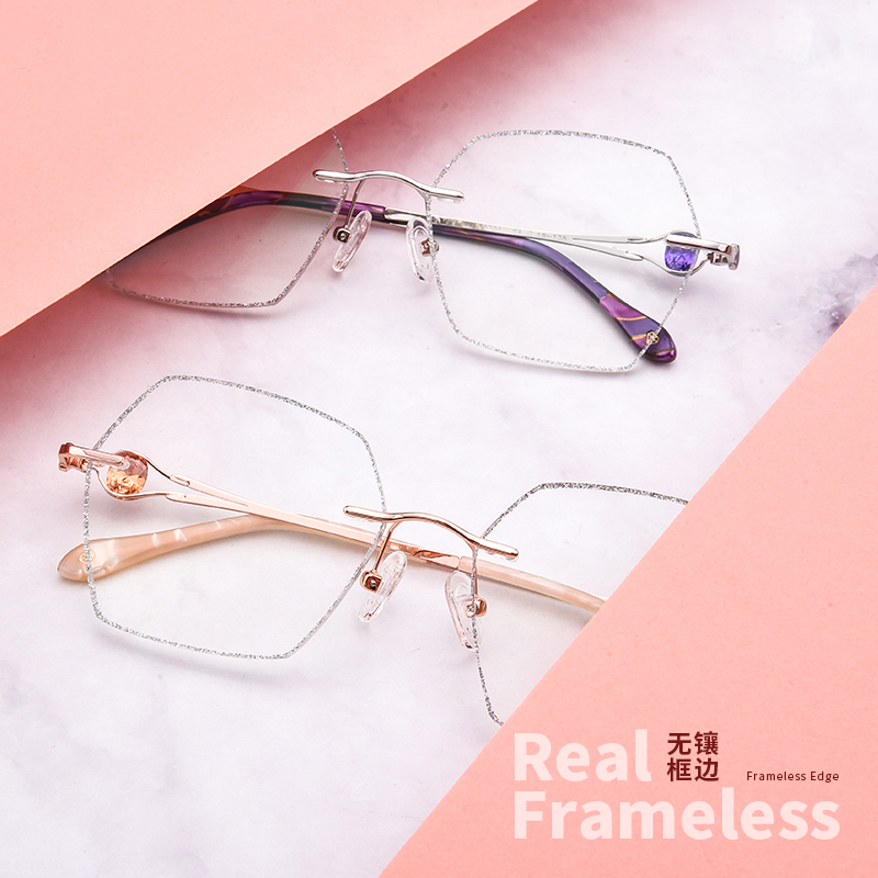 Frame-free nearsightedness glasses finished inlaid cutting edge female metal anti-blue tide can be equipped with degrees shake eyes Danyang frame tide