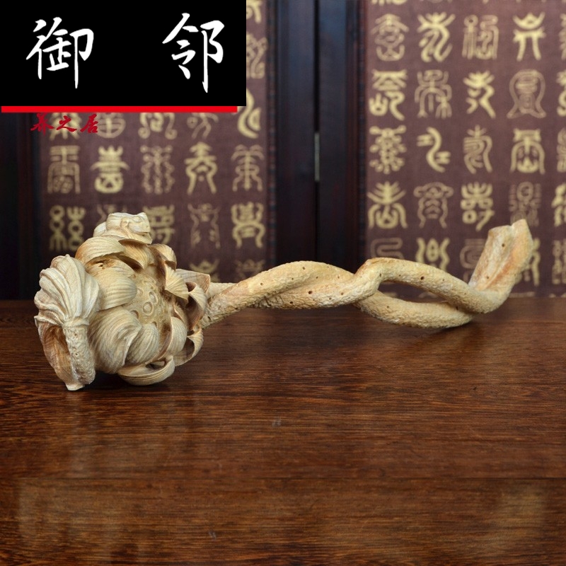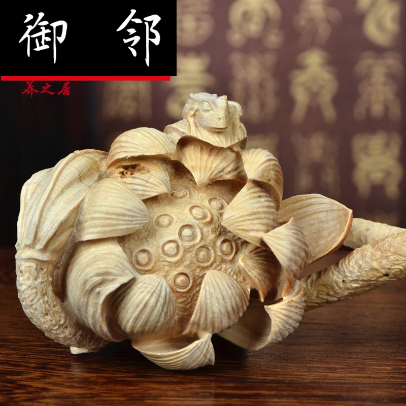 Yellow Poplar Wood Carving Craft Gift Pendulum with Frog Lotus Lotus Root Ruyi Family Residence Decorative wood Sculpture Gift gift YZJ