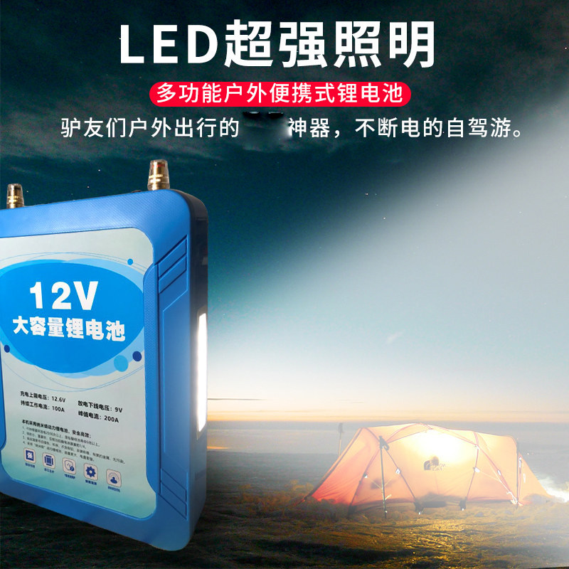Foot Capacity 12V Polymer Large Capacity Lithium Battery Storage Battery Waterproof Outdoor High Power Inverter Portable