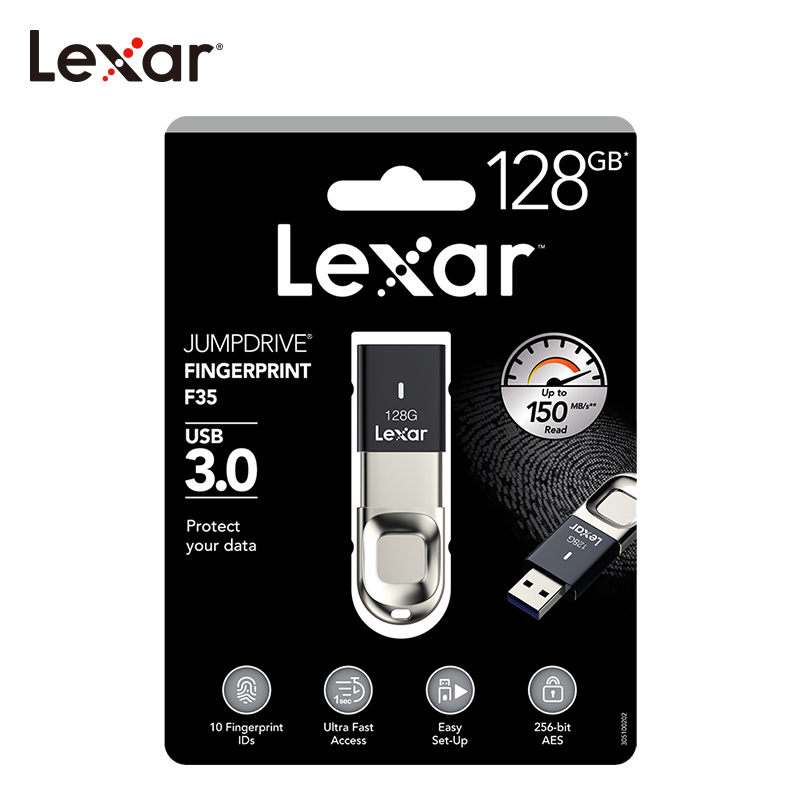 lexar reck sand F35 fingerprint recognition U pan 128G fingerprint encryption U pan USB3 0 high speed 128GB flash memory disc burglar-proof fingerprint recognition
