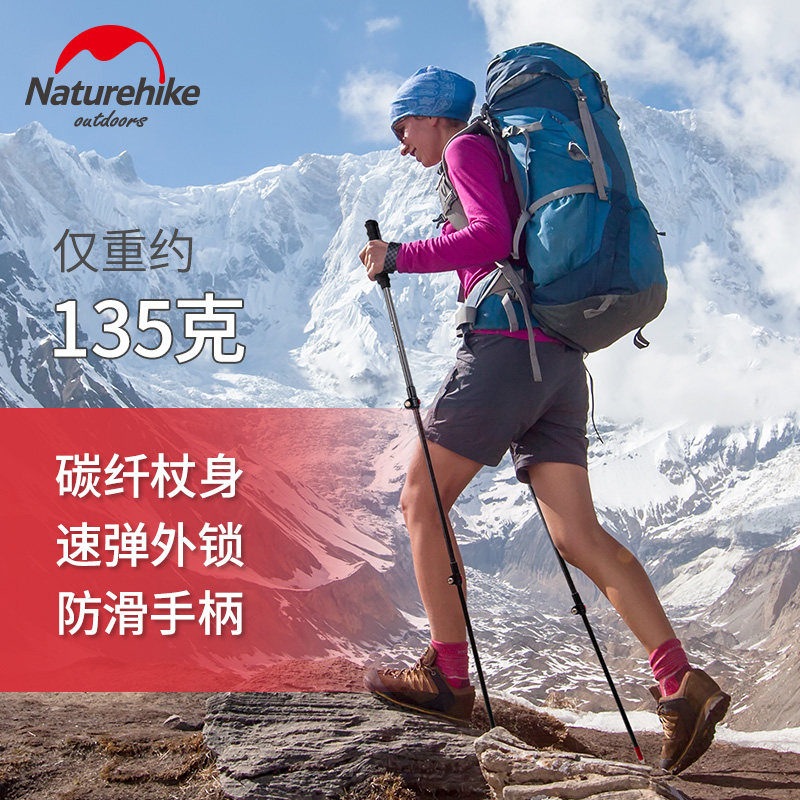 NH Norwegian Light Weight Carbon Fiber Outer Lock Three-section Stick Outdoor Hiking Mountaineering Stick Portable Telescopic Folding Stick Walking Stick
