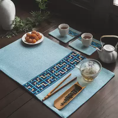 Cotton linen tea mat fabric dry tea mat new Chinese table flag linen tea table flag Chinese style tea mat set
