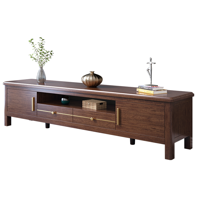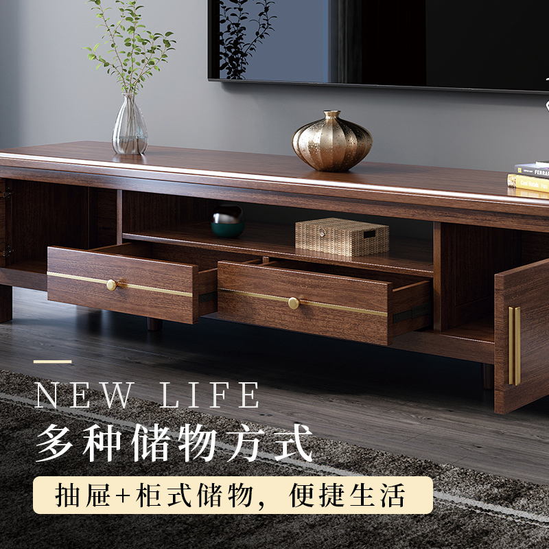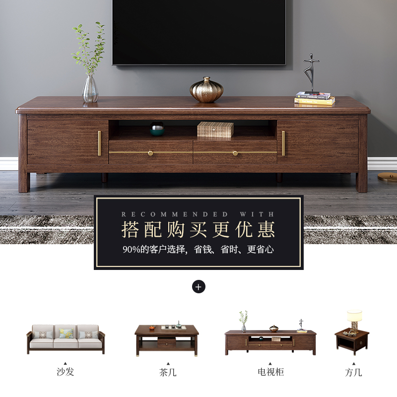 New Chinese solid wood TV cabinet tea few walnut wood small living room furniture combination set TV cabinet wall cabinet
