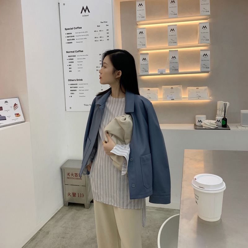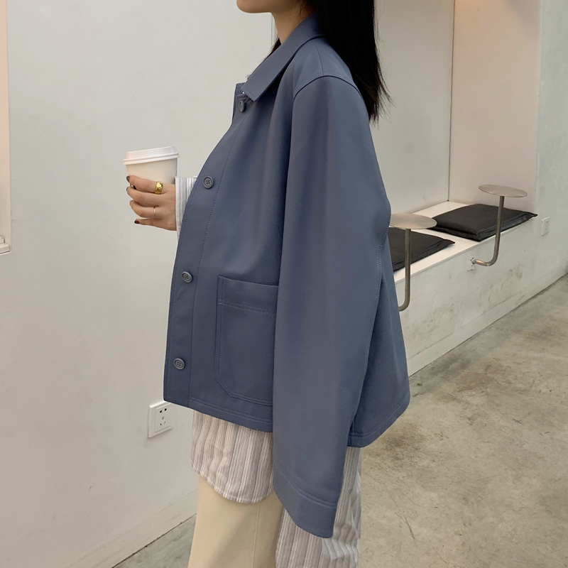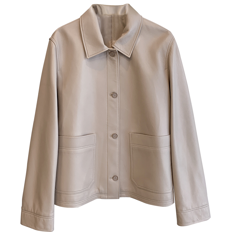 MSBEAST imported semi-matte washed sheepskin leather leather women's coat lapel short new style