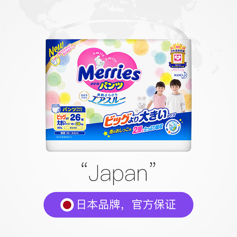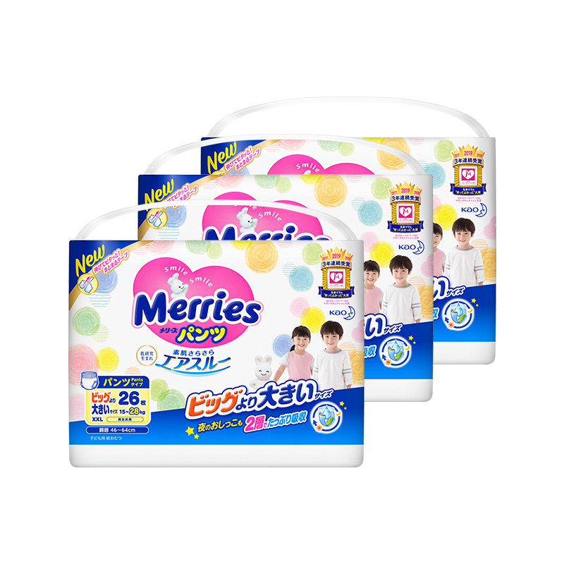 Japan Kao Myo Shu Merries ultra-thin breathable baby pull-up pants baby toddler pants XXL26*3 pack
