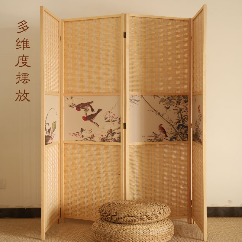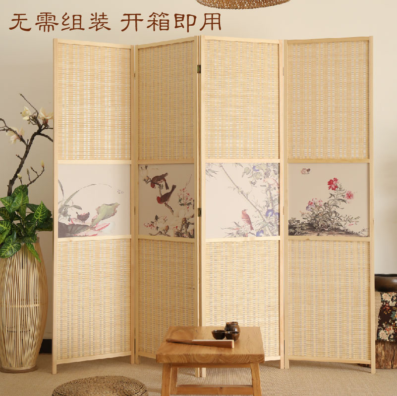 New Chinese-style folding screen folding mobile folding screen modern minimalist living-room bedroom Xuanguan Tian Yuan Garden Solid Wood Bamboo Partition Wall