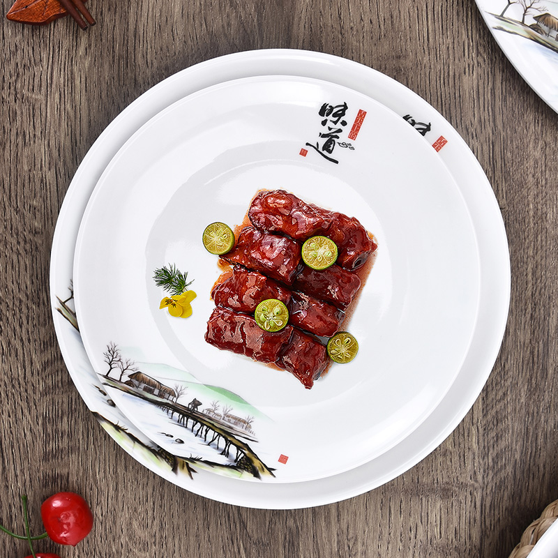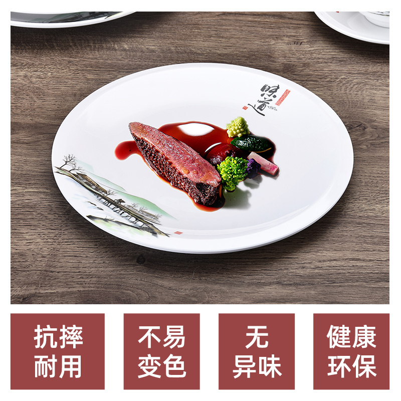 Melamine Resin Plate Disc Dinner Plate A5 Taste Plastic Shallow Pan Water Dumplings Imitation Porcelain Cutlery Dish High Temperature Resistant
