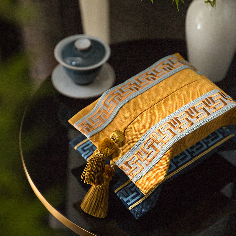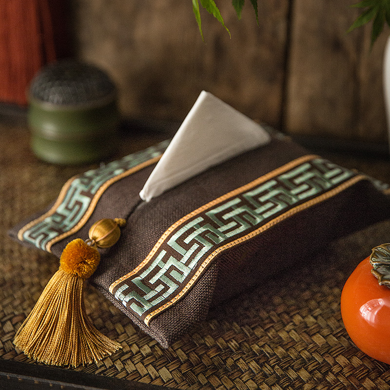 Retro New Chinese Art Modern Tissue Box Draw Box Fabric Car Paper Towel Set Tissue Bag Household Tissue Draw