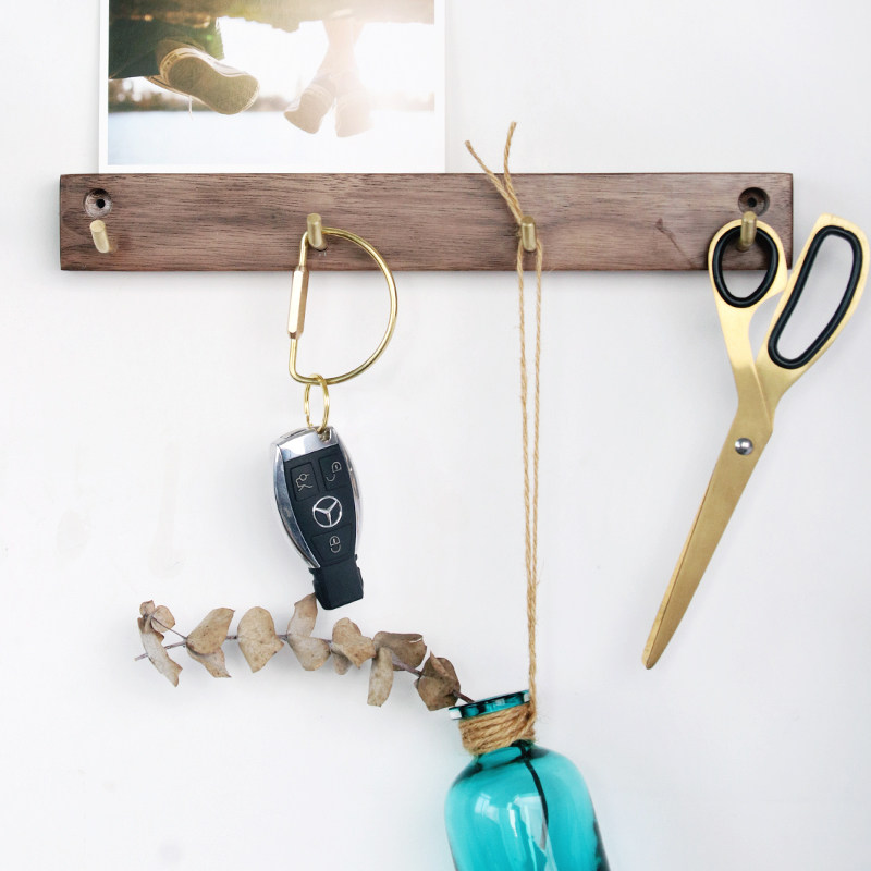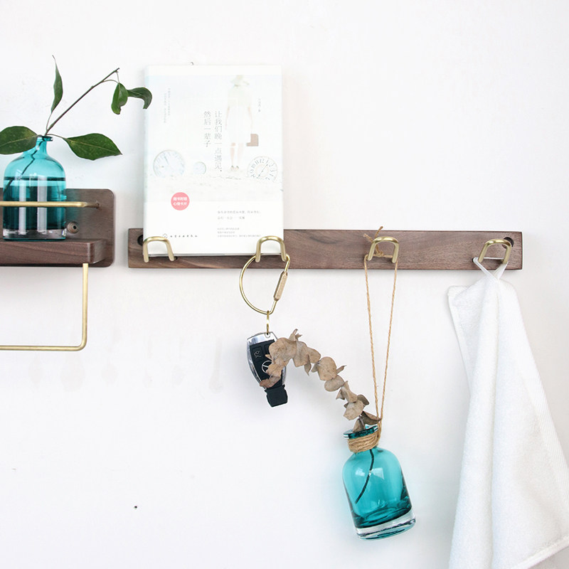 Black Walnuts Solid Wood Creative Cloak Hook Brass Platoon Hook Makeup Room Hanging Hanger Free to punch Xuanguan wall-hanging wall