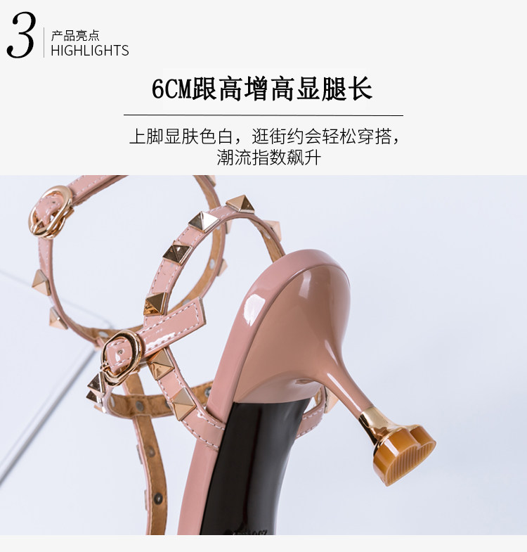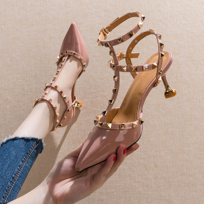 Rivet sandals 2022 new summer all-match fashion high-heeled shoes women's stiletto rivets women's shoes sexy fairy style