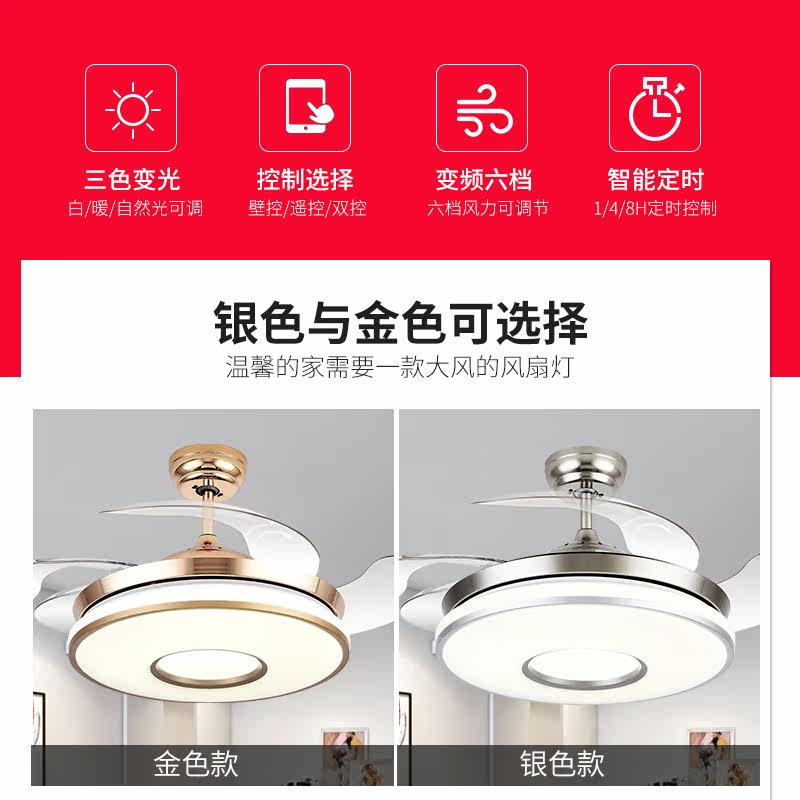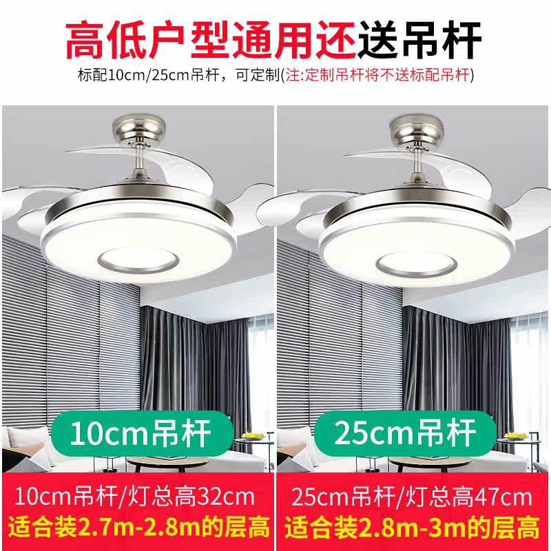 Zhanxin European-style ceiling fan lamp invisible dining room ceiling fan lamp modern simple bedroom living room household with electric fan chandelier