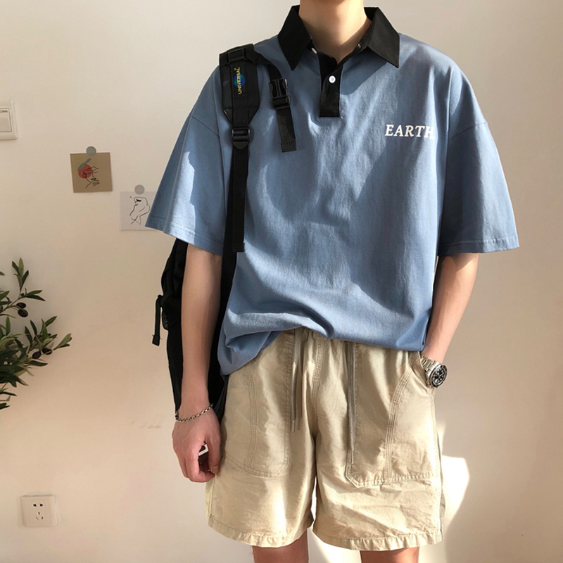 Original Cebu Wind POLO shirt male turn short sleeve T-shirt tide card trendy clothes net red ins ultra-fire hip hop harbor wind
