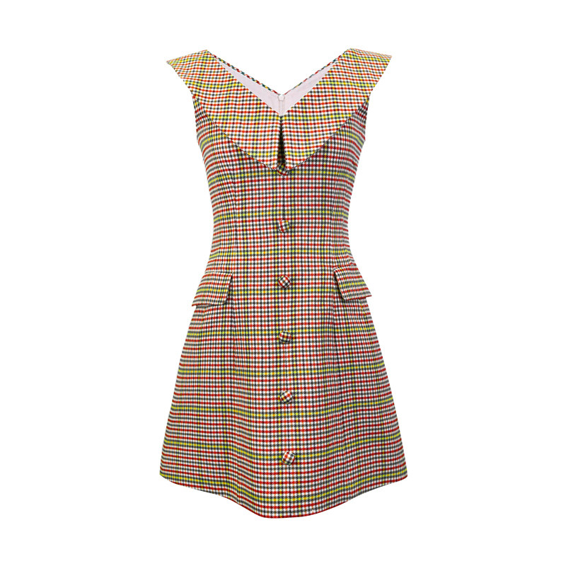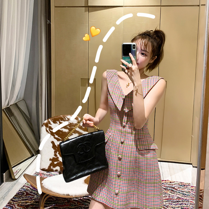 LIN vintage Hepburn style three-dimensional bud O-shaped pendulum French bellflower waist thin temperament plaid dress