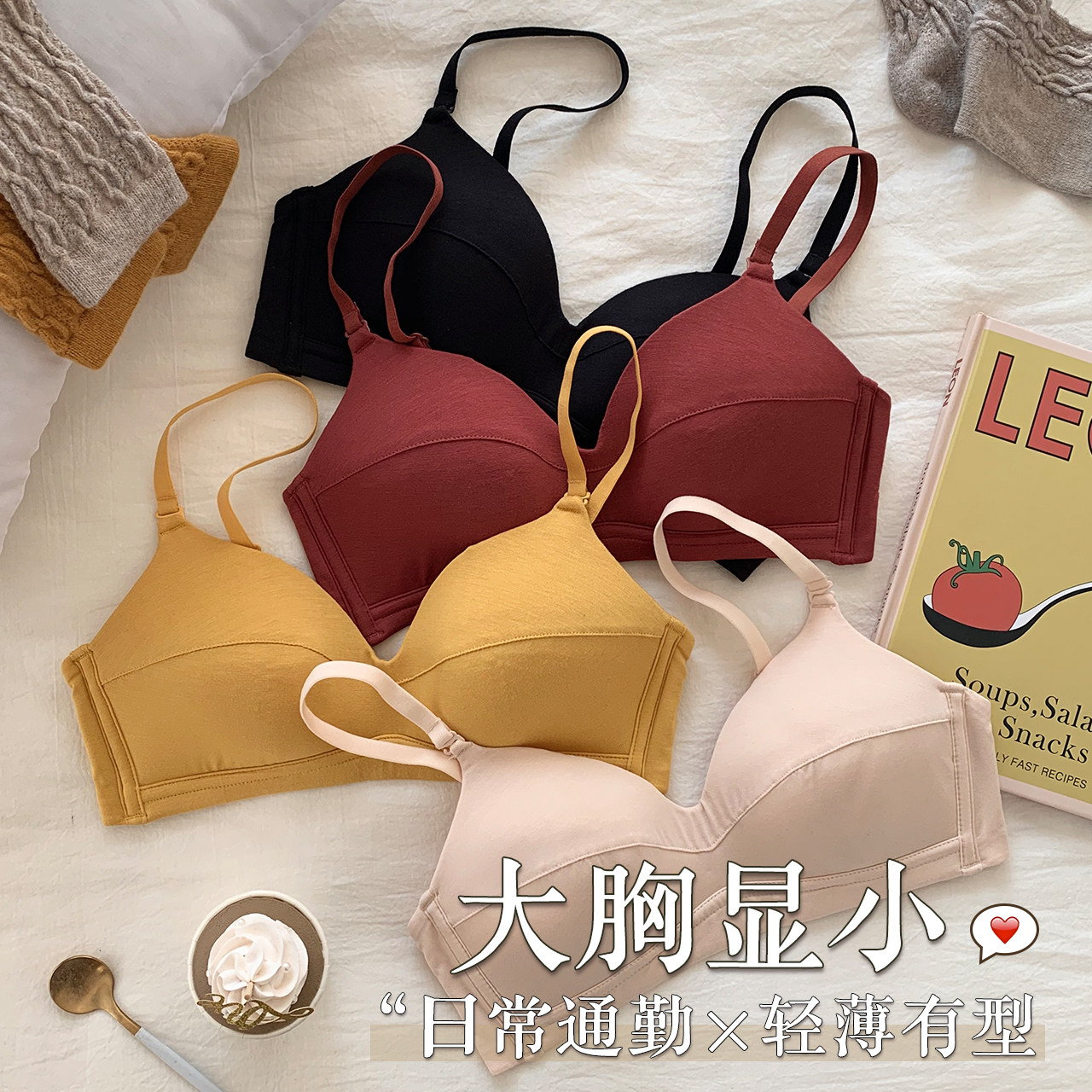 Big breasts show small breasts underwear women's ultra-thin no steel ring modal to receive auxiliary breasts anti-sagging bra bra seamless underwear cover