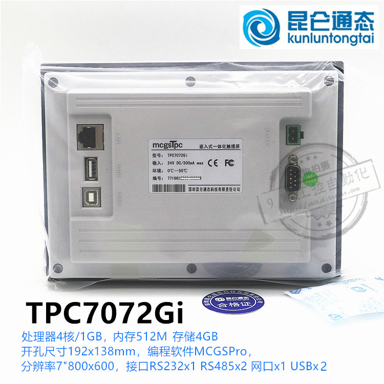(TPC7072Gi) 7-inch Ethernet port Kunlun on-state McgsPro touch screen 4G large memory