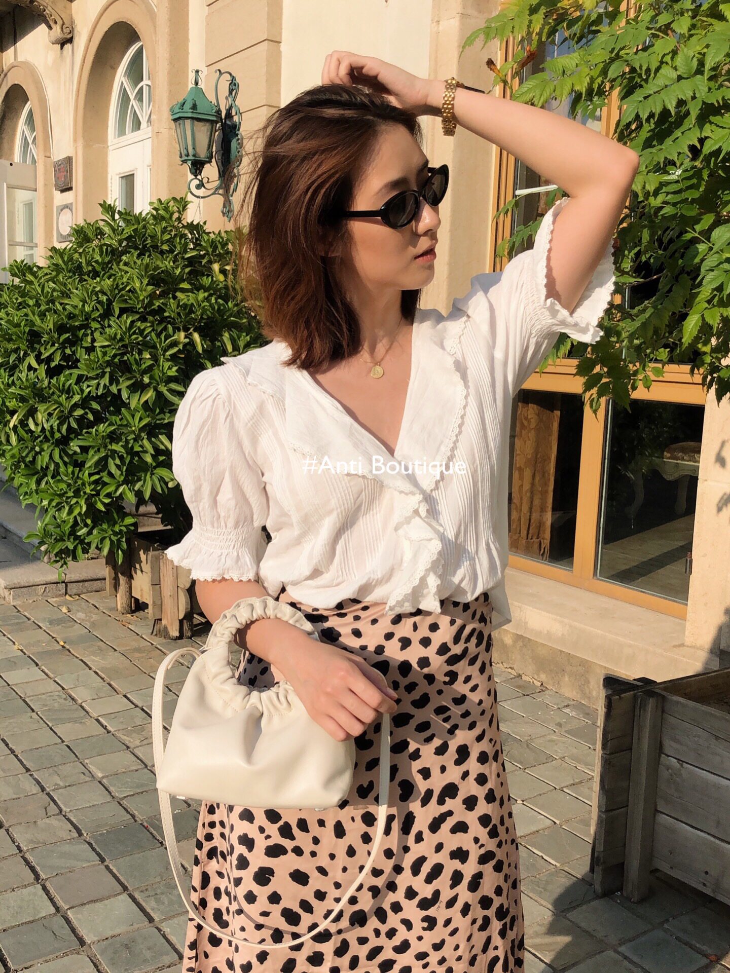 (ANTI) Italian sheep leather genuine leather hand carrying bag retro pleated cirque hand carrying bag ins wind blob main