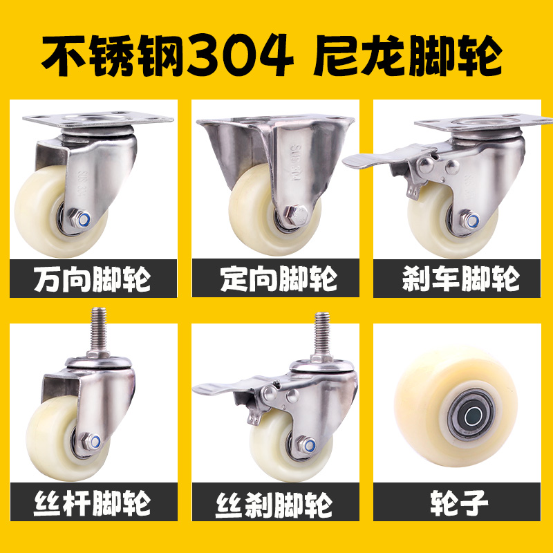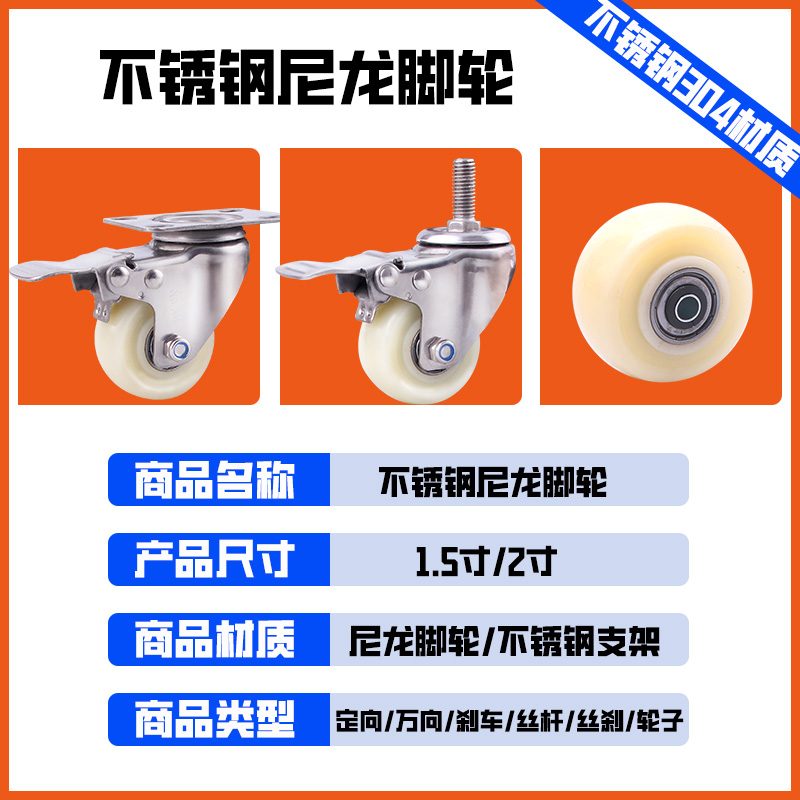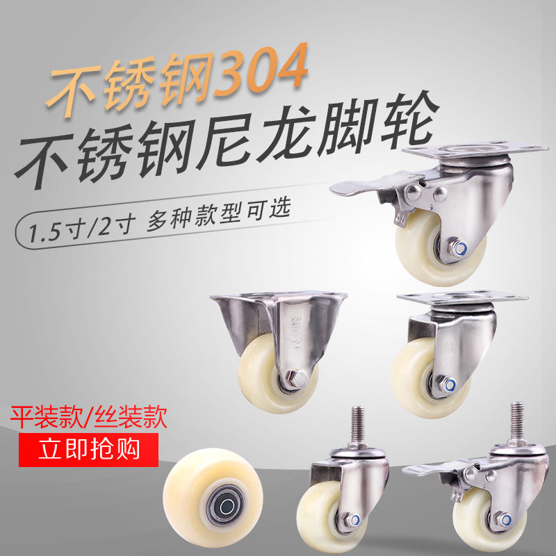 Chenno 1 5 inch stainless steel 304 million wheel 2 inch anti - rust anti - rust caster silk brake nylon wheel