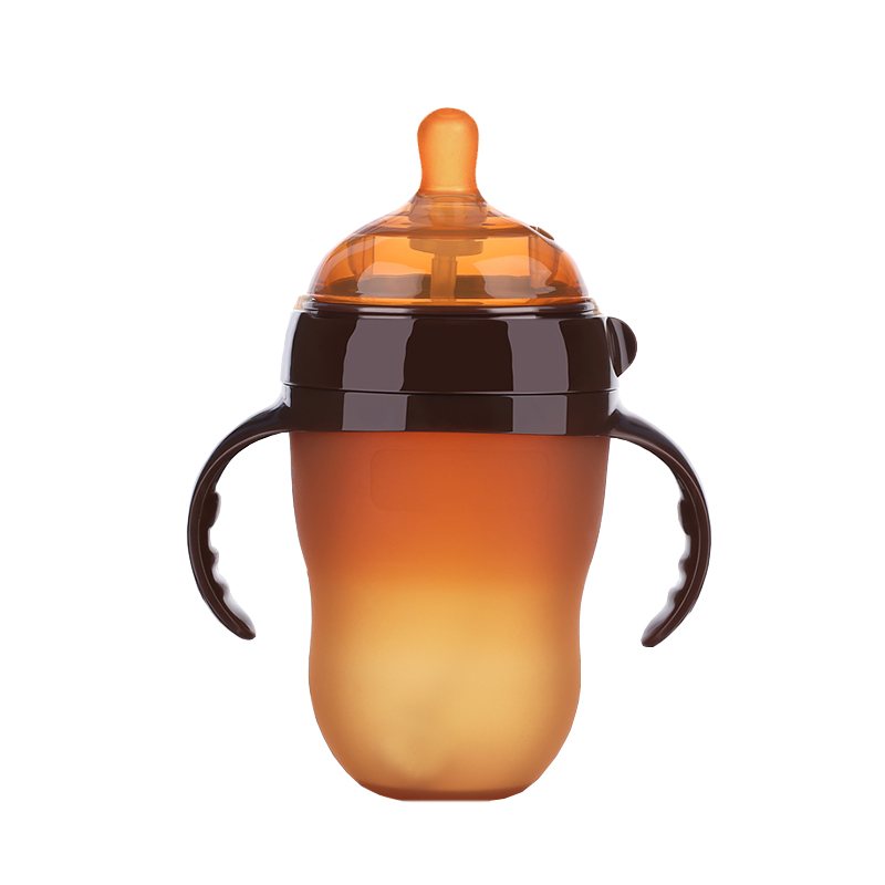 Baby Silicone Milk Bottle Newborn Baby Imitation Breast Milk Lactation Cream God Instrumental Anti-Fall wide calibre Anti-flatulled air with handle