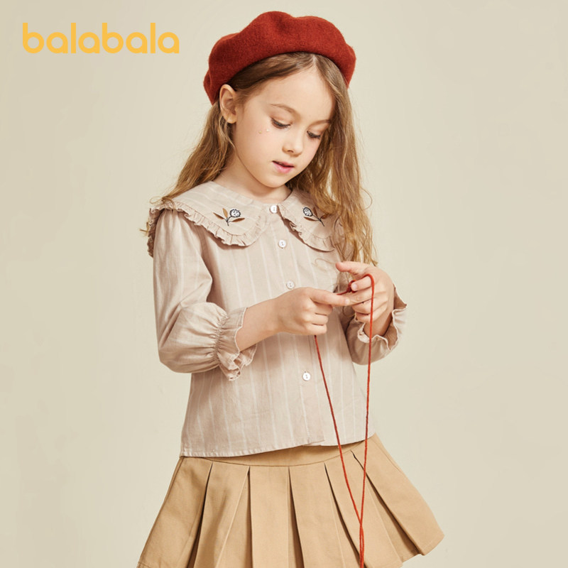 Bala Bala Children's clothing girls shirts spring baby tops Children's shirts literary style Korean large lapel foreign air