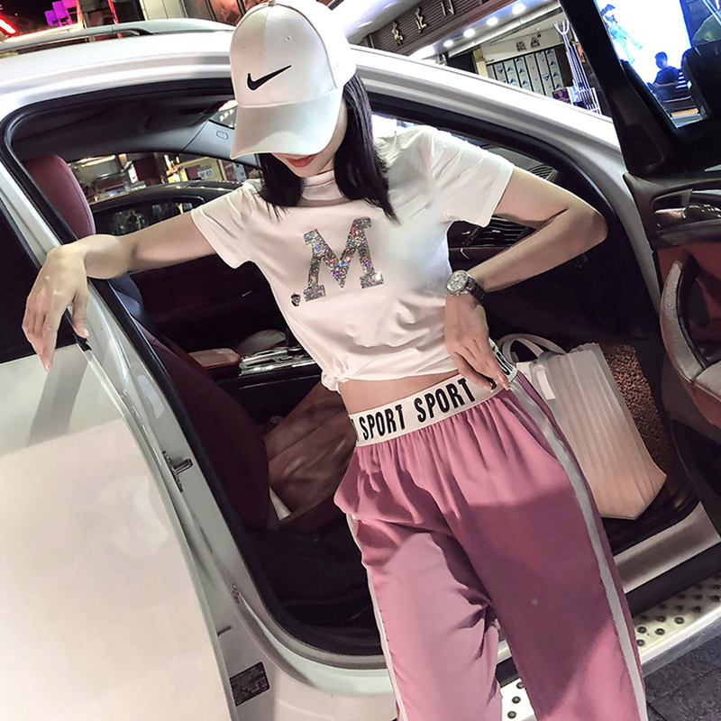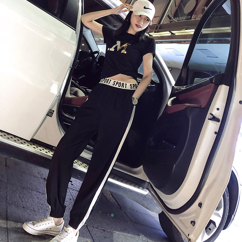 Sports and leisure suit women's summer 2020 foreign style thin fashion trend loose tide brand high waist two-piece net red