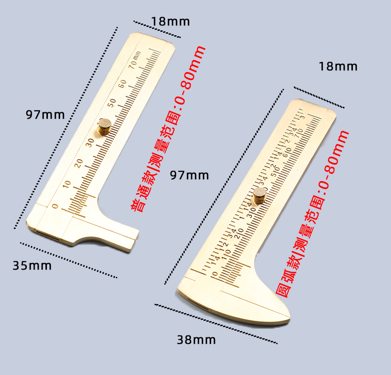 80mm bronze card ruler-single scale 80mm bronze card ruler-double scale 100mm bronze caliper-lengthened single scale 100mm copper-caliper-lengthened double scale 80mm copper card