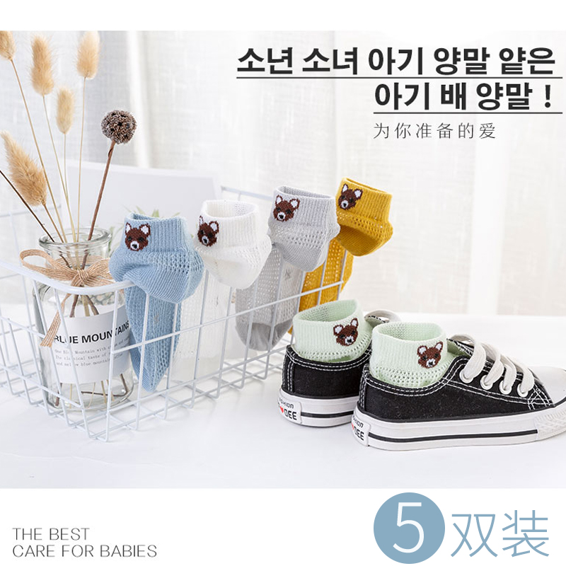 Children disposable socks autumn and winter pure cotton travel male and female children light and thin air park non-slip baby short socks 5 double
